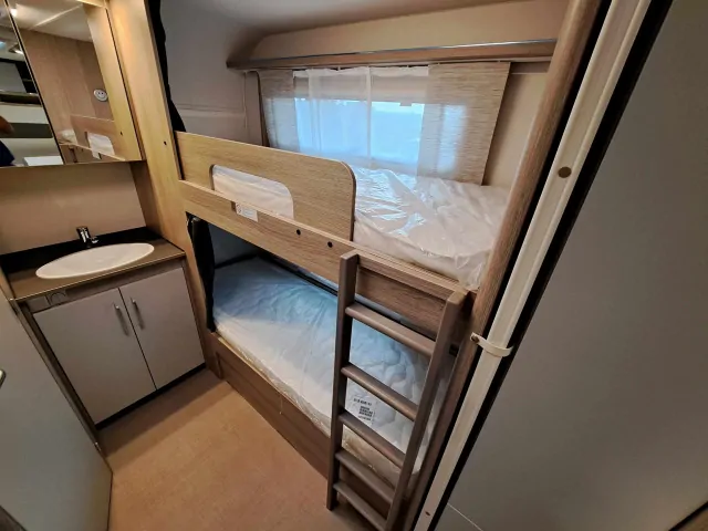 Bettsystem festes Etagenbett, festes Doppelbett quer, umbaubare Liegefläche
