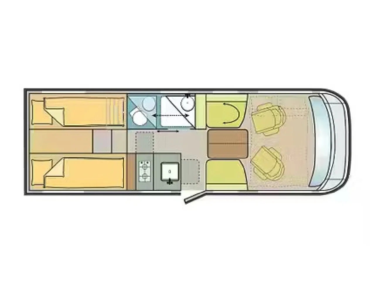 | Bettsystem | Alkovenbett/Hubbett, feste Einzelbetten längs |